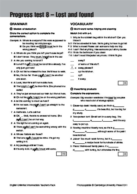 Read Online Solutions Progress Test 8 English Unlimited Epub