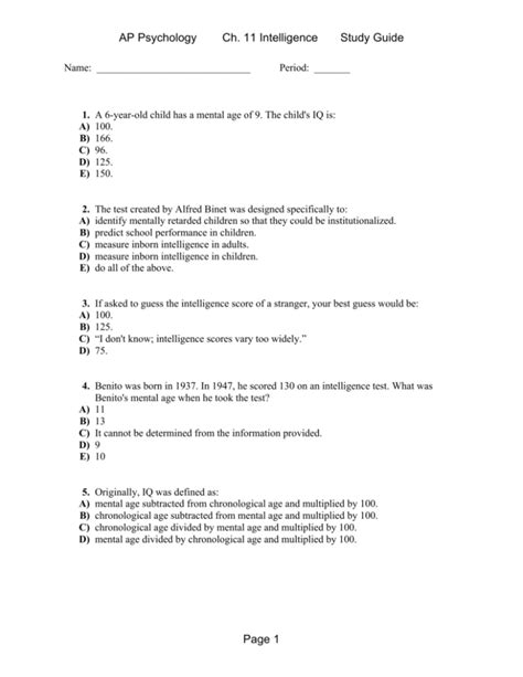 Download Psychology Chapter 11 Intelligence Study Guide Answers Kindle Editon